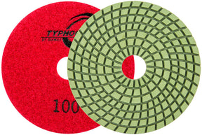 5" Typhoon Polishing Disk ECONOMY — Wet — #50–#3000 — economy-class wet diamond polishing disks with 3 mm resin and spiral tread that spreads water evenly; Velcro back for quick changes.