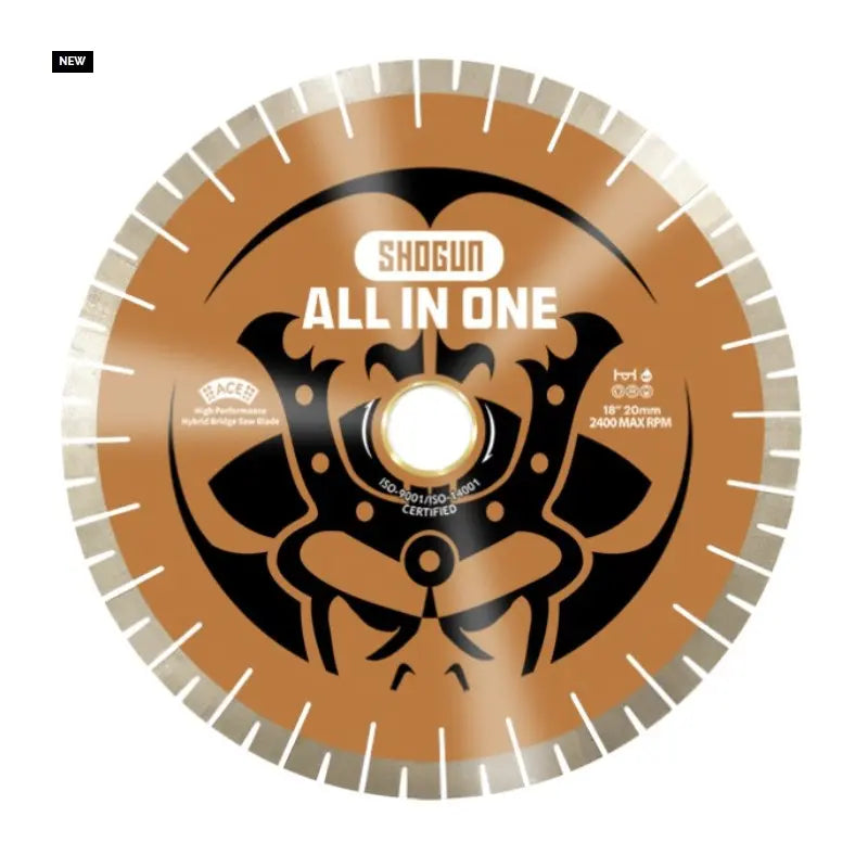 Shogun All In One 16" x .125 x 20MM Bridge Saw Blade — premium straight & miter‑cut diamond blade engineered for fast, clean cuts and long life on hard stones.