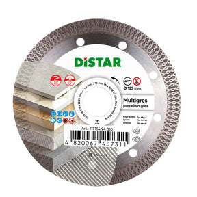 The DISTAR Multigres Diamond Blade 4.5"–5" is built for high-speed cutting of ceramic tile, marble, and porcelain gres. With an ultra-thin 0.06 in. (1.4 mm) profile and 0.39 in. (10 mm) diamond layer height, this blade delivers smooth, fast, and efficient cuts. Capable of reaching up to 2 linear meters per minute, the Multigres offers both productivity and precision for professional tilers and DIY users. Its standard 22.23 mm bore makes it compatible with all popular angle grinders, providing a reliable and versatile solution for wall and floor tile projects.