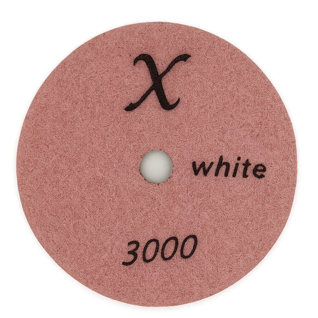 Dynamic Stone Tools XW-Series Wet Polishing Pads (White Resin) — Flexible 4" wet pads engineered for fast cutting and a high-gloss finish on natural and engineered stone. Durable white resin bond helps reduce color transfer on light stones.