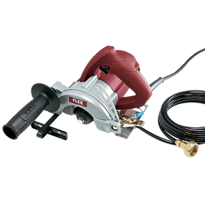 The FLEX CS40 Wet Stone Saw is designed for use in the stone, tile and glass industry. This machine is able to provide perfectly straight cuts which are required for quality fabrication and installation. The CS40 is equiped with a powerfull motor that delivers the strength to power through tough materials such as 3 cm granite, porcelain, and engineered stones when used with the proper blade. A unique feature is that it can accept concave blades used for cutting sinkholes or other inside arc and it s truly unique in the industry having this capability. The CS 40 WET comes as standard with a a built-in GFCI (ground fault circuit interrupter) and a water feed.