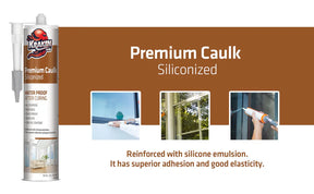 Premium Siliconized Caulk Sealant is an acrylic emulsion based product that gives a strong bond between materials and endures extreme conditions. Besides having good adhesion, it is also elastic.