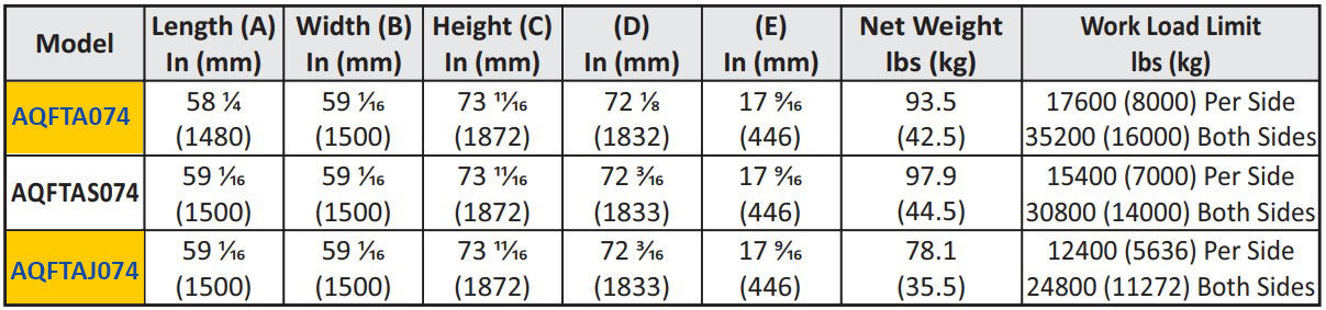 | Model | AQFTA074, AQFTAJ074, AQFTAS074 |