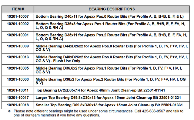 - Please note different bearings might be used under some circumstances. Call 425-636-8567 and talk to one of our team members if you have any questions.
