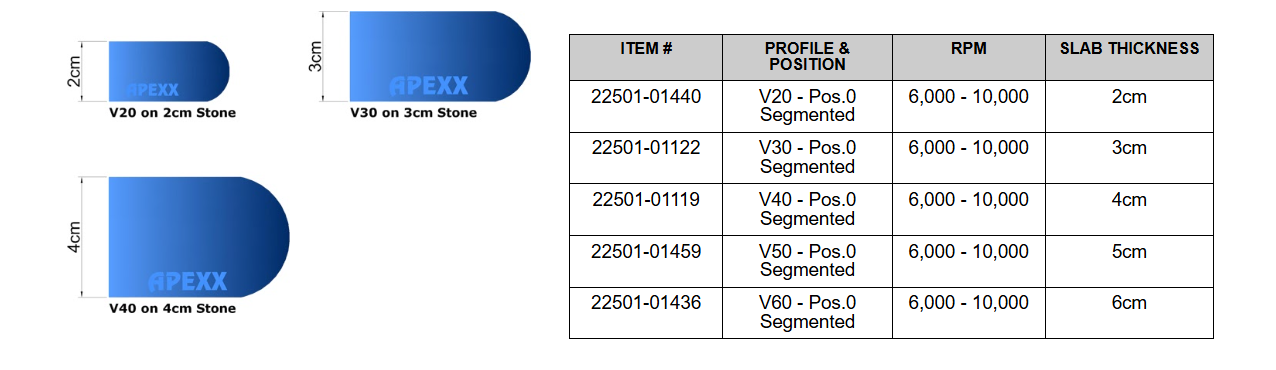 APEXX™ Segmented Pos.0 Router Bits Shape V (Full Bullnose) Segmented Router Bits
