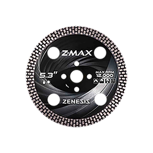 ZENESIS Z-Max Turbo Blade — High‑performance blade for fast, clean cuts on granite, quartz, and quartzite. Oversized cooling holes control heat; ZENESIS segment design improves speed and life.